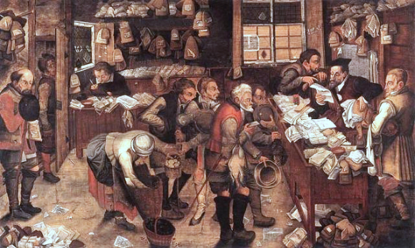 Als unsere Kanzlei im Jahre 1984 in Jülich auf der Wilhelmstraße eröffnete, hatten sich die Verhältnisse in Anwaltskanzleien schon sehr geändert. Mandanten standen nicht gesammelt an, wie im Jahre 1621 auf dem Bild von Brueghel. Auch war es nicht mehr üblich, das Honorar in Naturalien zu begleichen. Heute ist vieles anders geworden. Doch die Probleme der Mandanten und die Aktenberge, die sind geblieben.